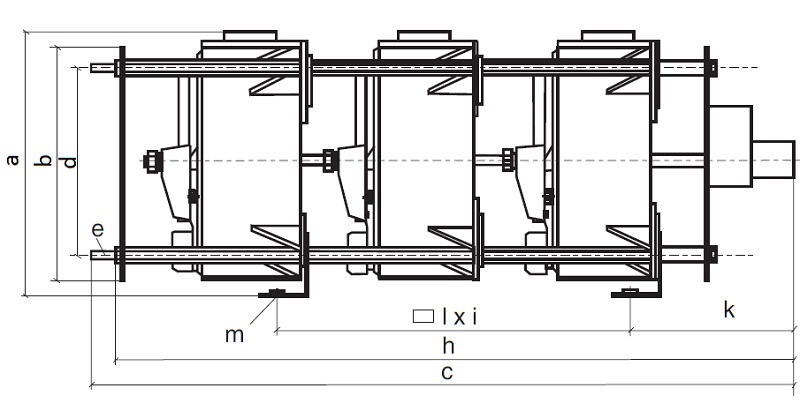 | a in mm | b in mm | c M AC in mm | c M DC in mm | d in mm | e | h M AC in mm | h M DC in mm | l xi in mm | k M AC in mm | k M DC in mm | m | Masse in kg | |