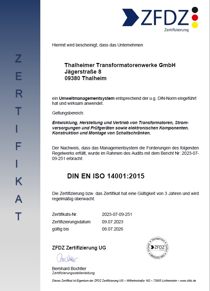 ISO 14001 Zert Thalheimer Transformatorenwerke GmbH